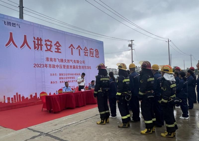 为进一步加强城镇燃气安全生产应急管理工作,积极响应2023年安全月“人人讲安全·个个会应急”活动主题,提高处置燃气突发事故的应急反应能力。6月19日上午9点,潘集区应急局、区住建局、潘集消防救援大队、淮南市飞腾天然气有限公司在黄河东路刘圩棚户区改造项目区域开展了市政中压燃气管道泄露抢险演练。