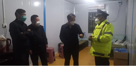 4月16日晚,局党组书记、局长祁玉德,党组成员、副局长刘怀书等深入疫情防控卡点督查工作。要求值班人员严格落实防控政策和规定,坚守岗位、恪尽职守,筑牢疫情防线,同时做好自身防护。