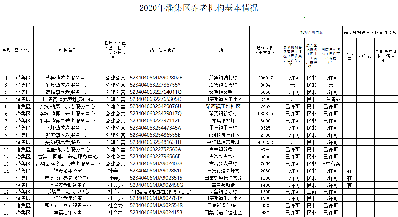 潘集区养老机构相关资质情况统计表