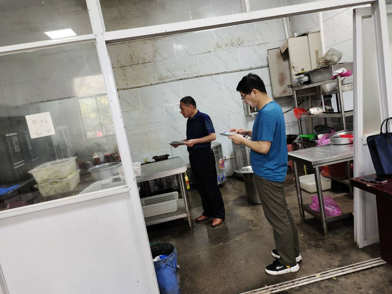 执法人员针对各项具体安全工作明确职责,要求工作人员提高食堂卫生工作意识,增强食堂卫生常识,加强消毒措施。食堂后勤人员每年必须进行健康检查,取得健康证明后进行工作。加强建立健全的卫生管理制度,加强管理意识、提高管理水平、明确管理责任。负责人分定期和不定期相结合的方式对学校食堂卫生安全进行检查,发现问题及时整改。核查了学校食堂索证索票制度是否落实,采购的食品及原材料是否是正规产品在保质期内,存储是否符合管理要求等。