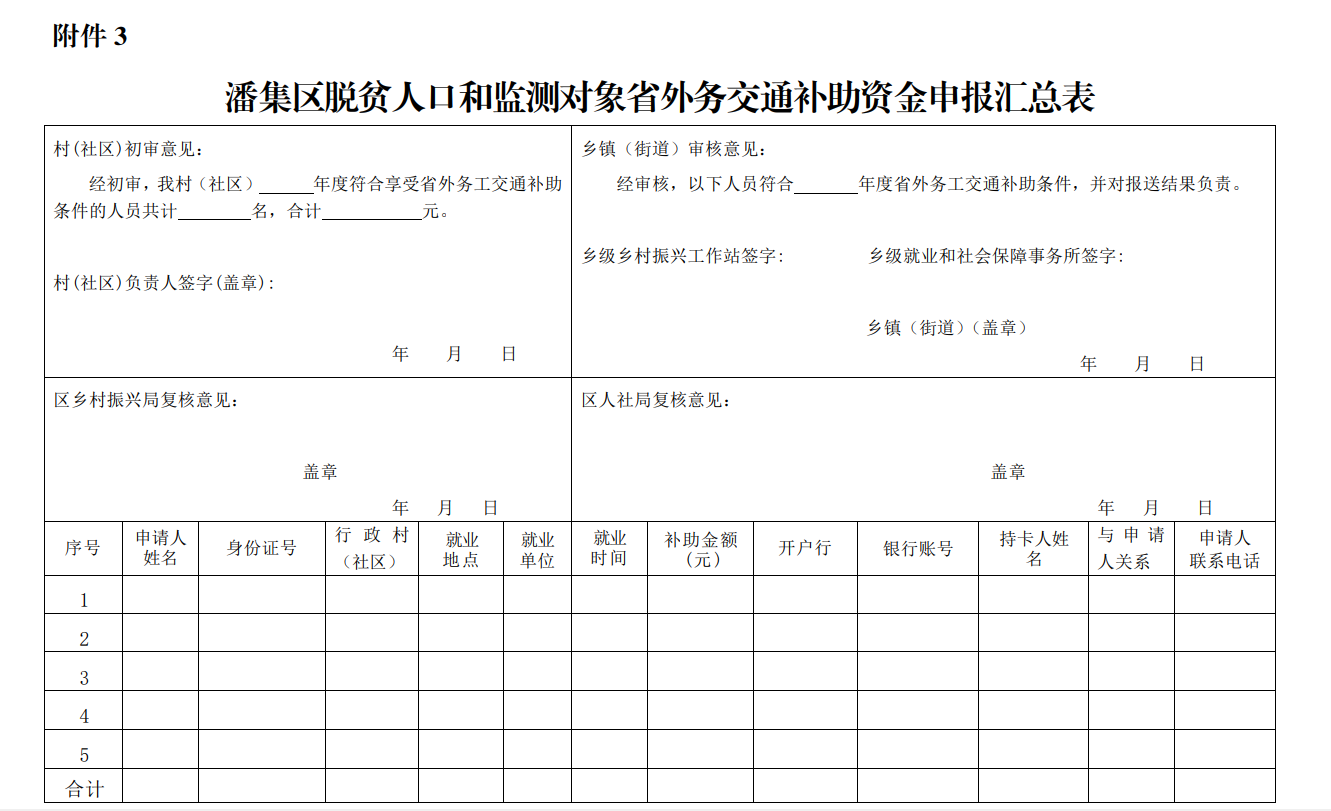 外出务工交通补助申请