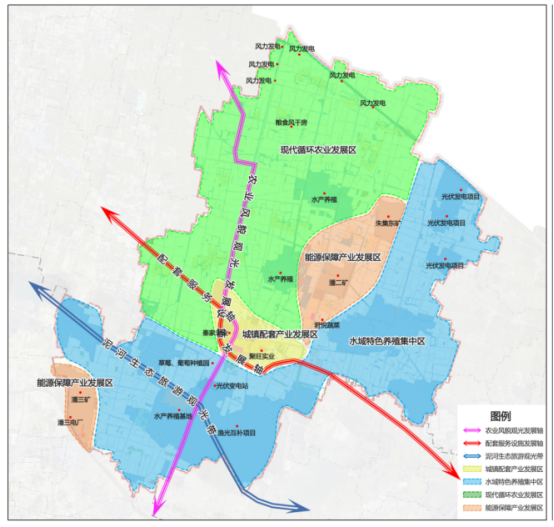 水产养殖集中区:以朱庄、依托镇域内南部和东部集中连片水域发展水产养殖;