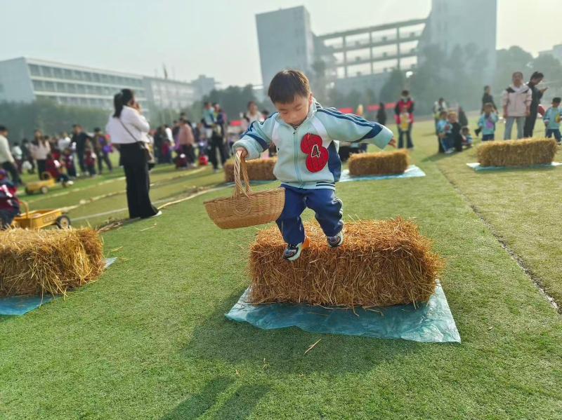 来自幼儿园小班、中班和大班的小朋友化身土豆队、茄子队、玉米队,在今年秋收之后开启了别样的力量较量与技巧比拼。 赛场上,“播种能手”们比拼插秧速度,“丰收达人”们挑战收割效率,每一个游戏项目都蕴含着农人的巧思与耐力。家长们沉浸式的陪伴和参与也增进了亲子情感。农耕特色运动会把日常的农事活动与体育运动相融合,富有乡村特色,趣味性十足,既是技艺与速度的比拼,又考验幼儿园团队协作能力,这是市直机关幼儿园潘集分园特色办园的生动实践。比赛项目贴近农村生活,再现了日常生产劳动场景,不仅让小朋友体验到了劳动的辛勤,也享受到了运动的乐趣。