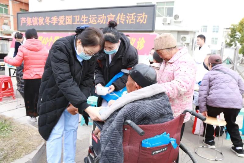 温情瞬间在现场不断上演。看到72岁的中风患者孟某坐着轮椅,在老伴推扶下艰难到场,医务人员立即主动上前,全程协助老人完成血压测量。得知老人血压偏高,她们细心叮嘱家属:“老人有脑中风病史,一定要规律用药,密切监测血压变化,有异常及时就医。”细致的关怀让老人与家属深受感动。