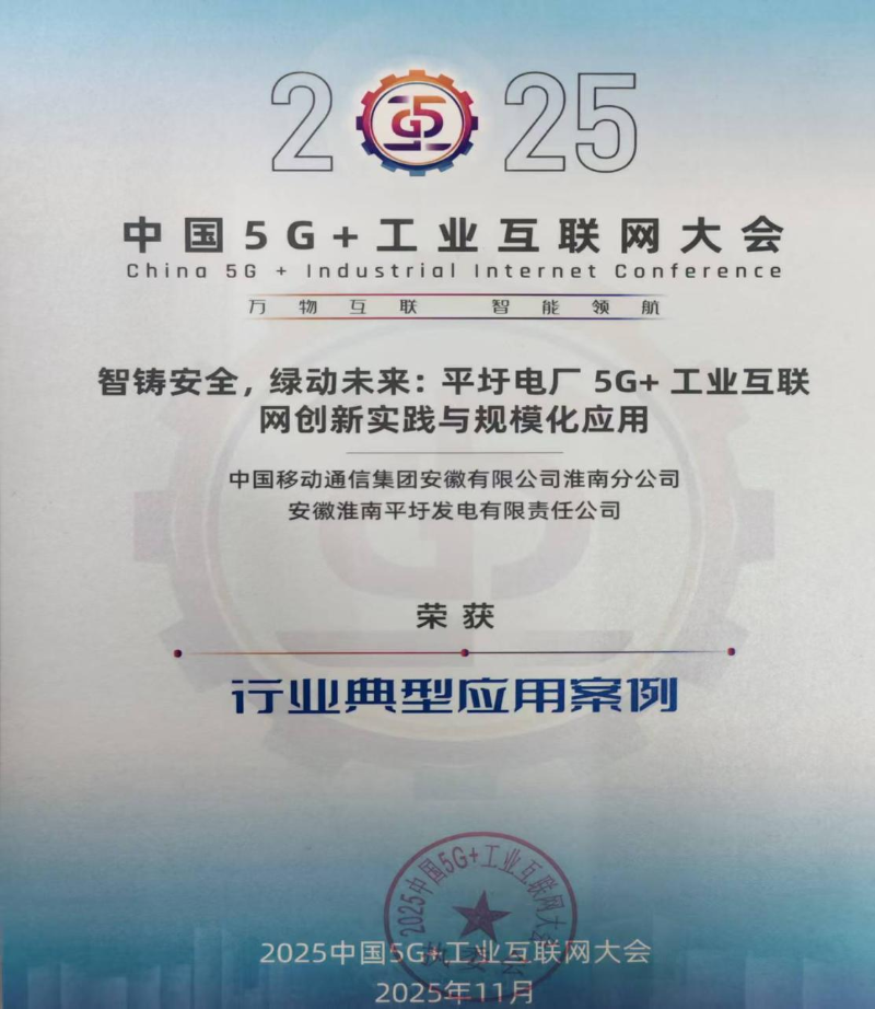近日,记者在2025年中国5G+工业互联网大会上获悉,中国移动安徽公司淮南分公司(以下简称“淮南移动”)与平圩电厂联合申报的“智铸安全,绿动未来”5G+工业互联网创新实践项目,成功入选大会“行业典型应用案例”。