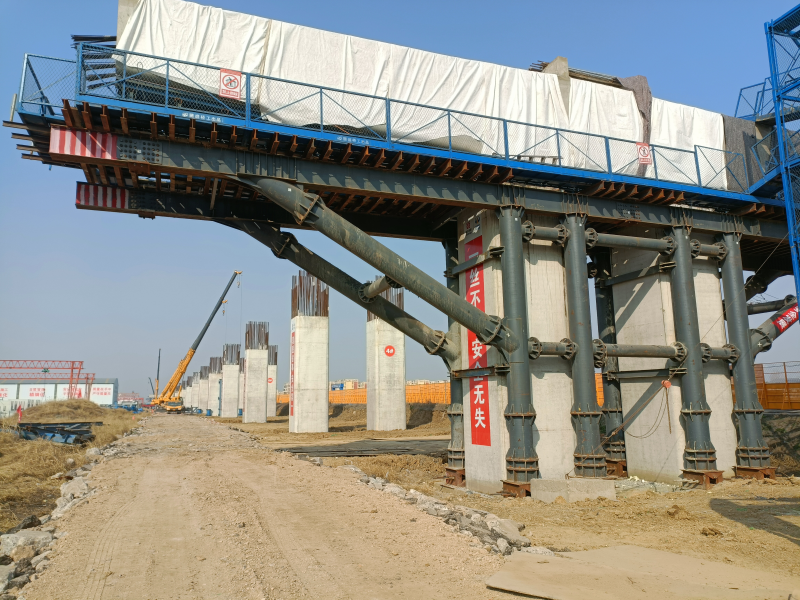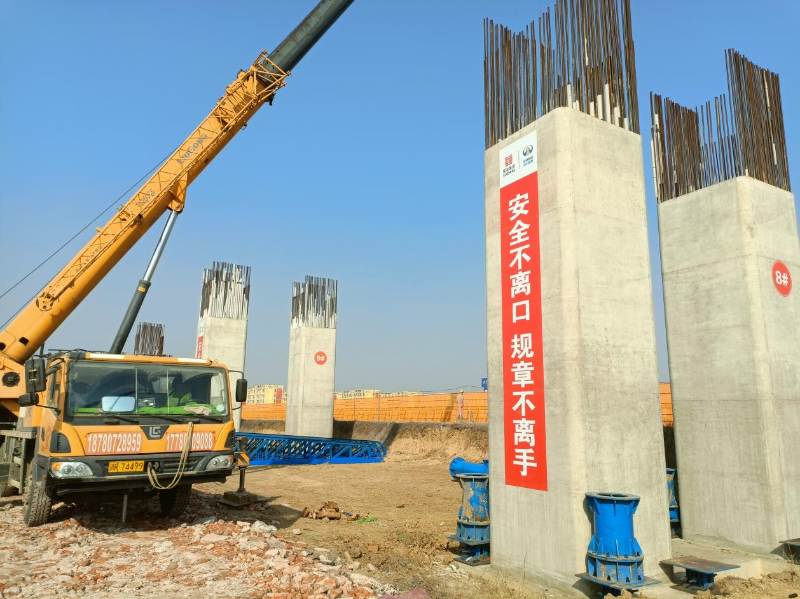 “项目在当地政府的大力支持下,我们克服不利因素,加快施工进度,目前桩基完成70%,承台完成64%,墩柱完成60%,正在进行大悬臂盖梁施工。”S63怀远至凤台高速公路二标段生产副经理彭紫阳表示,“下一步项目部将严守安全、质量和环保底线,加大大悬臂盖梁施工力度,有序推进梁板预制与架设,确保完成施工进度目标。”