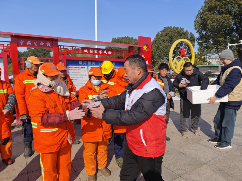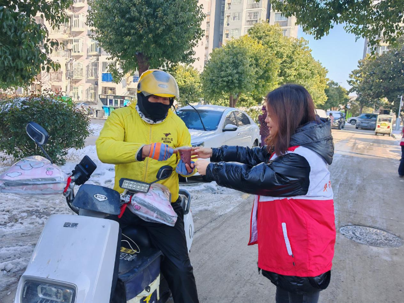 随后,工作人员还专程前往街头,为坚守岗位的环卫工人、外卖骑手、保安及保洁人员送上腊八粥和节日祝福。这些城市“守护者”日复一日默默奉献,用辛勤劳动维系着城市的有序运转。一碗粥,承载着敬意与关怀,传递着社区的温情,让他们在服务城市的同时,也感受到城市的温暖与回馈。