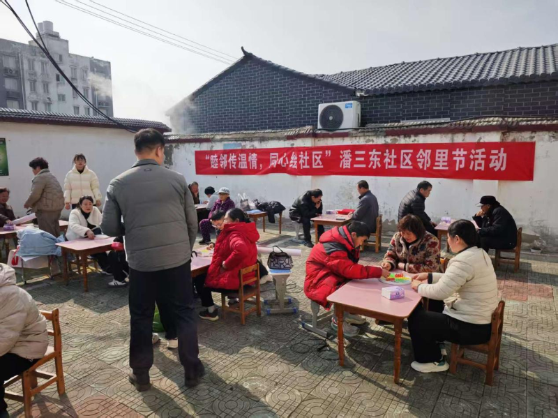 2月4日,芦集镇潘三东社区开展2026年社区邻里节“睦邻传温情,同心绘社区”主题文体活动,社区大院里阳光正好、热闹非凡。活动分区域同步开展,各有特色、精彩纷呈:翰墨飘香区,书法爱好者凝神挥毫,一笔一划间,一副副寓意吉祥、墨韵悠长的春联新鲜出炉,引得居民驻足观赏、争相领取;棋逢对手区,象棋、跳棋比赛有序进行,选手们沉着思考、运筹帷幄,在楚河汉界与棋盘格间切磋技艺、以棋会友;活力跃动区人气最旺,跳绳、踢毽子等传统体育项目轮番上演,居民们踊跃参与,矫健的身影穿梭其间,此起彼伏的加油声、欢笑声响彻大院。