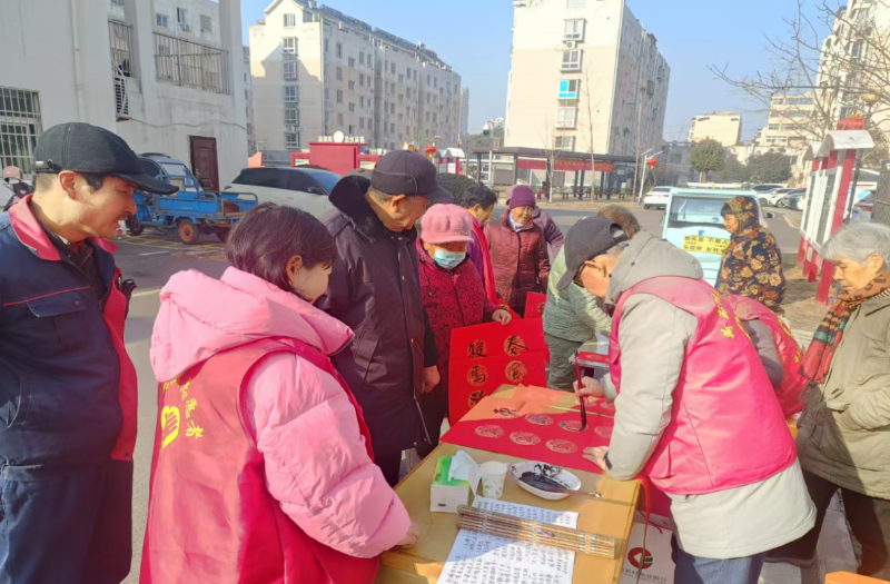 辖区居民们纷纷驻足观赏、踊跃领取,有的精心挑选心仪的联句,有的主动请书法爱好者定制专属春联,拿到春联的居民们脸上都洋溢着幸福的笑容,一边欣赏墨宝,一边相互道贺,现场热闹非凡,浓浓的年味在笔墨书香中悄然流淌,也让中华优秀传统文化在潜移默化中浸润人心。志愿者们则主动上前,协助铺纸、晾春联,将写好的春联一一送到居民手中,把社区的关怀与温暖传递给每一个家庭,真正实现“把祝福送出去,把温暖带回家”。