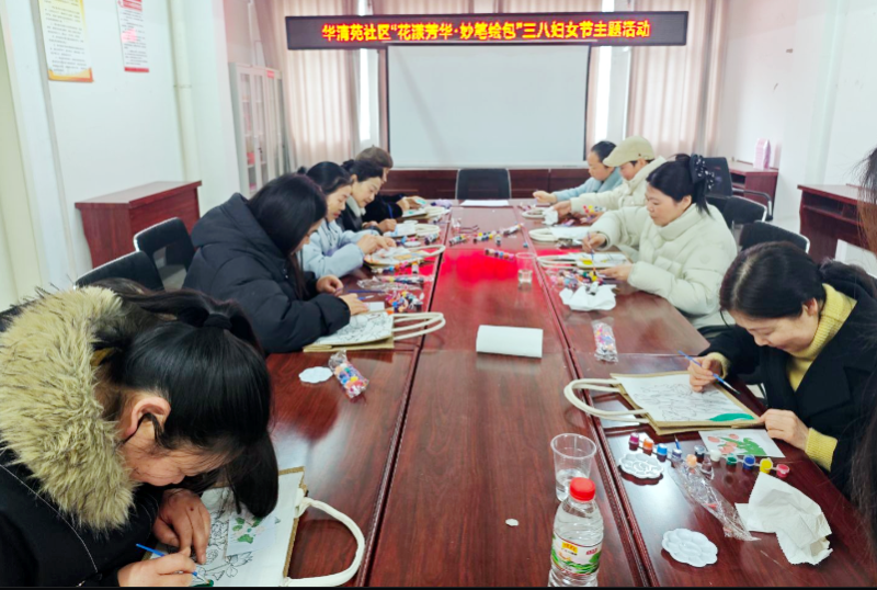 为庆祝“三八”国际妇女节,丰富辖区女性精神文化生活,传递社区温暖关怀,3月5日下午,田集街道华清苑社区新时代文明实践站开展“花漾芳华·妙笔绘包”三八妇女节主题活动,邀请辖区女性居民欢聚一堂,以手绘传情、以创意献礼,共度温馨雅致的节日时光。