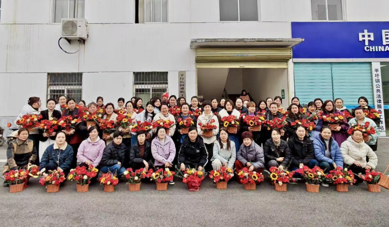 为庆祝“三八”国际妇女节,丰富女职工精神文化生活,提升妇女权益保障法治意识,近日,平圩镇开展“巾帼心向党·花开绽芳华”插花活动,镇全体女职工、各村社区两委女同志、乡村振兴专干及敬老院女职工共60余人参加活动。