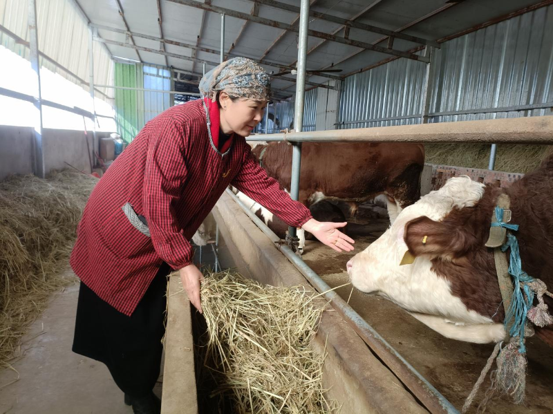 刘琴在牛舍查看 张传金摄