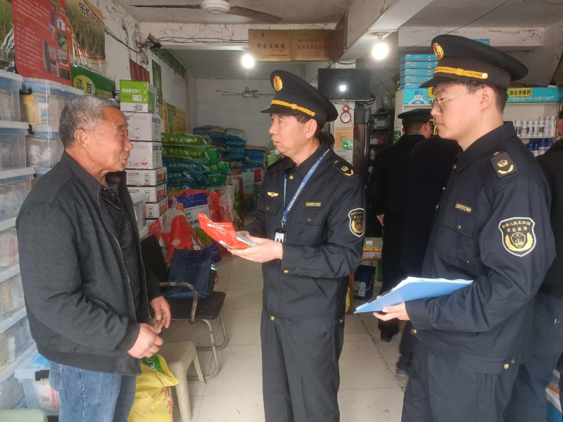 执法人员在向农资经营户宣传法律法规 潘士清摄