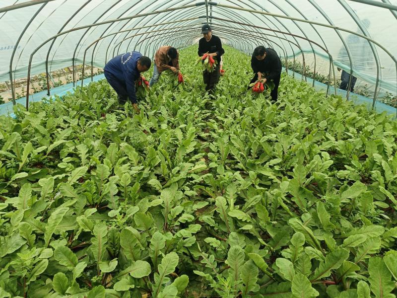 走进高皇旺民家庭农场,连片的蔬菜大棚在阳光下熠熠生辉,棚内鲜艳的红萝卜、饱满的甘蓝、鲜嫩的菠菜长势喜人,一派丰收在望的景象。农场负责人孙晋明正忙着和工人一起采收蔬菜,脸上洋溢着喜悦:“我这儿种了100多亩大棚,现在每天能上市一万多斤蔬菜。再过段时间,辣椒、豆角、大白菜也将陆续成熟上市。”孙晋明坦言,能有这样的好收成,离不开镇里农技人员的全程帮扶,“从育苗、苗期管理到定植,专家们定期过来指导,帮我们解决了不少种植难题,让蔬菜品质和产量都上去了。在政府和我们合作社的共同努力下,把高皇蔬菜打造成响当当的绿色品牌。”
