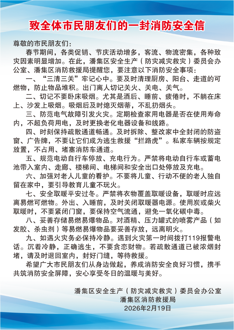 信息来源:潘集区安全生产(防灾减灾救灾)委员会办公室 潘集区消防救援局