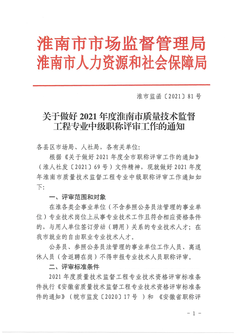 | 名称: | 【政策文件】关于做好2021年度淮南市质量技术监督工程专业中级职称评审工作的通知(淮市监函〔2021]81号) |