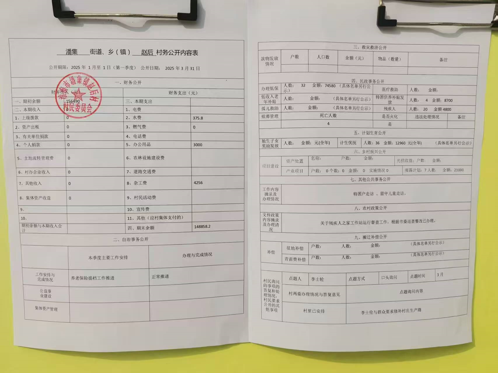 2025年第一季度村务公开图片如下: