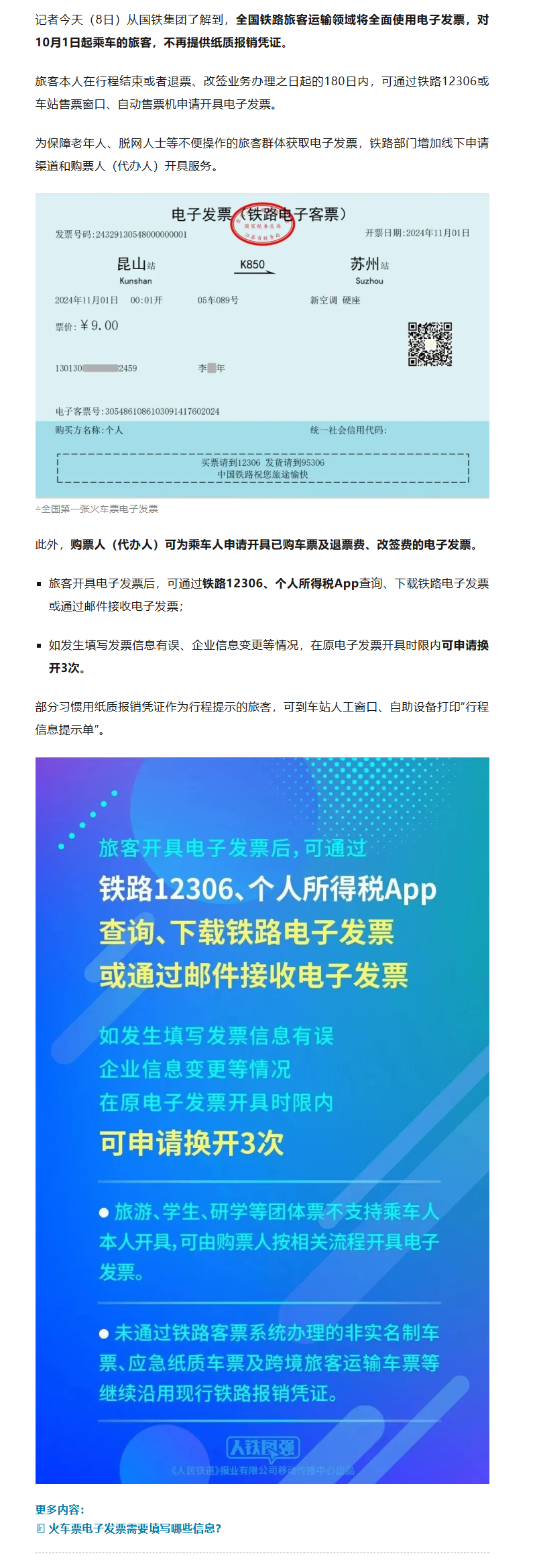 【转发扩散】10月1日起,铁路客运将全面使用电子发票