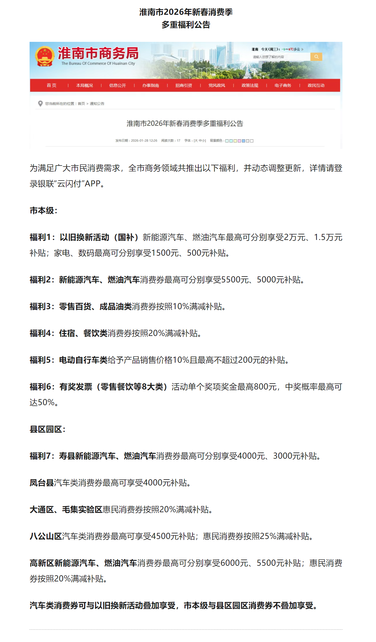 【促销费】淮南市2026年新春消费季多重福利公告