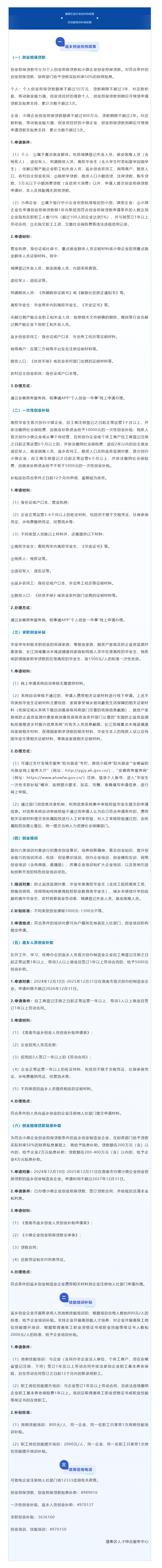 【就业创业】潘集区返乡创业扶持政策及技能培训补贴政策