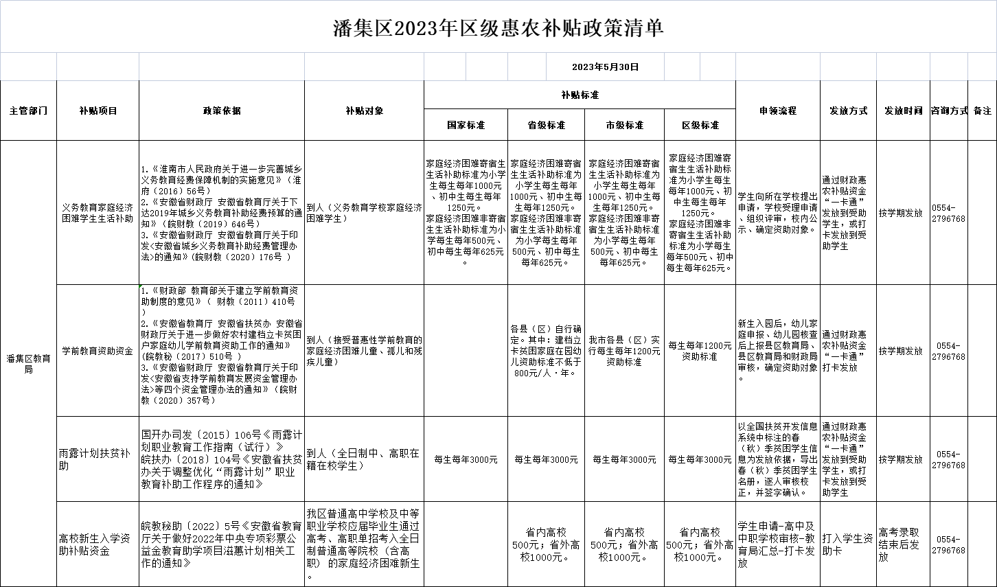 潘集区2023年区级惠农补贴政策清单