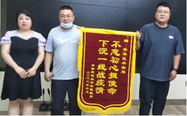 2022年6月8日,田集街道白云社区王红松书记等一行三人将一面“不忘初心担使命,下沉一线战疫情”的锦旗送到区水利局,对疫情期间坚守一线的水利局志愿服务者全力坚守、不畏艰难表示认可和感谢,这面锦旗是一份信赖,更是一份责任。
