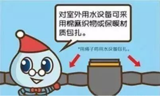 1、穿衣戴帽:对暴露在室外的水管、水表、水龙头等用水设施,可以使用棉麻织物、塑料泡沫进行包扎保温。水表井内虽已有保温材料,但如放置旧衣物或泡沫塑料等物品后保温效果更好,同时水表箱盖或管道井门不要随意开启保持密封,可有效防止水表管道冻堵。