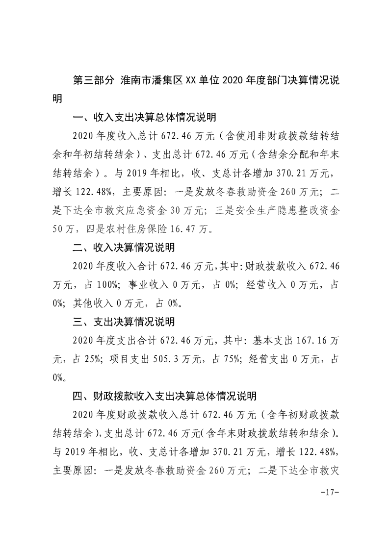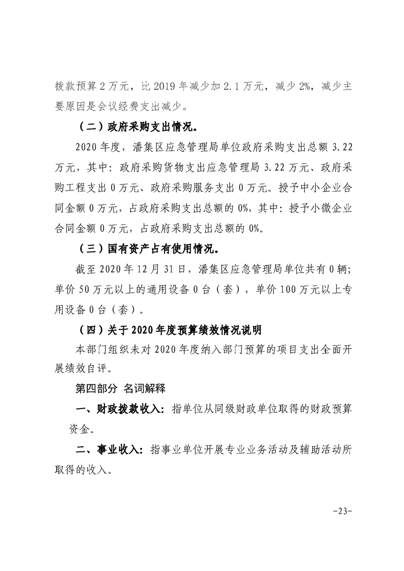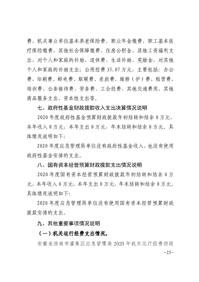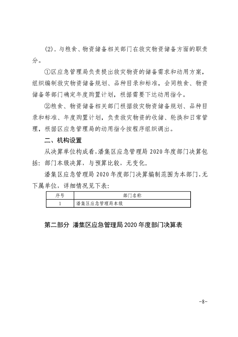 淮南市潘集区应急管理局2020年度部门决算情况公开