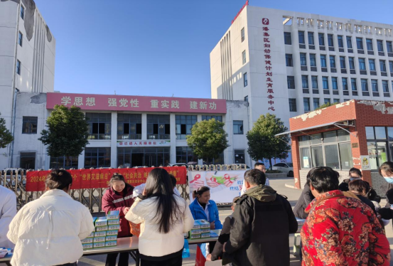 12月1日上午,潘集区疾控中心、潘集区妇计中心联合市五院和北方医院在武夷山路疾控中心门口共同举办世界艾滋病日宣传活动。活动现场市五院和北方医院医生为群众提供健康检查服务。疾控工作人员介绍艾滋病防治知识和如何预防艾滋病。