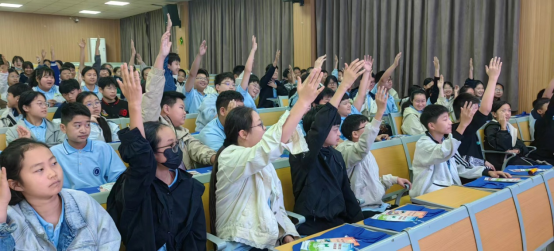 2、趣味互动:讲座设置有奖问答环节,学生们积极举手应答,我中心工作人员为回答正确的学生发放牙膏牙刷套装、笔记本中性笔、跳绳等奖品。