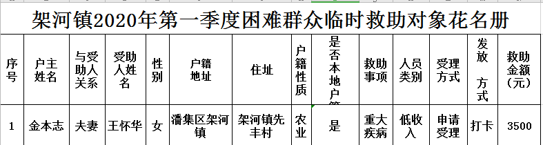架河镇2020年第一季度医疗救助花名册