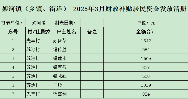 【城市低保】架河镇2025年3月财政补贴资金发放
