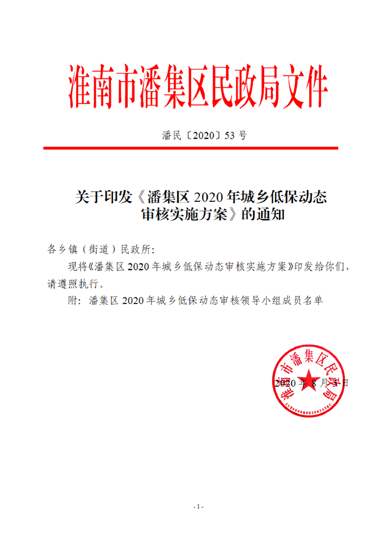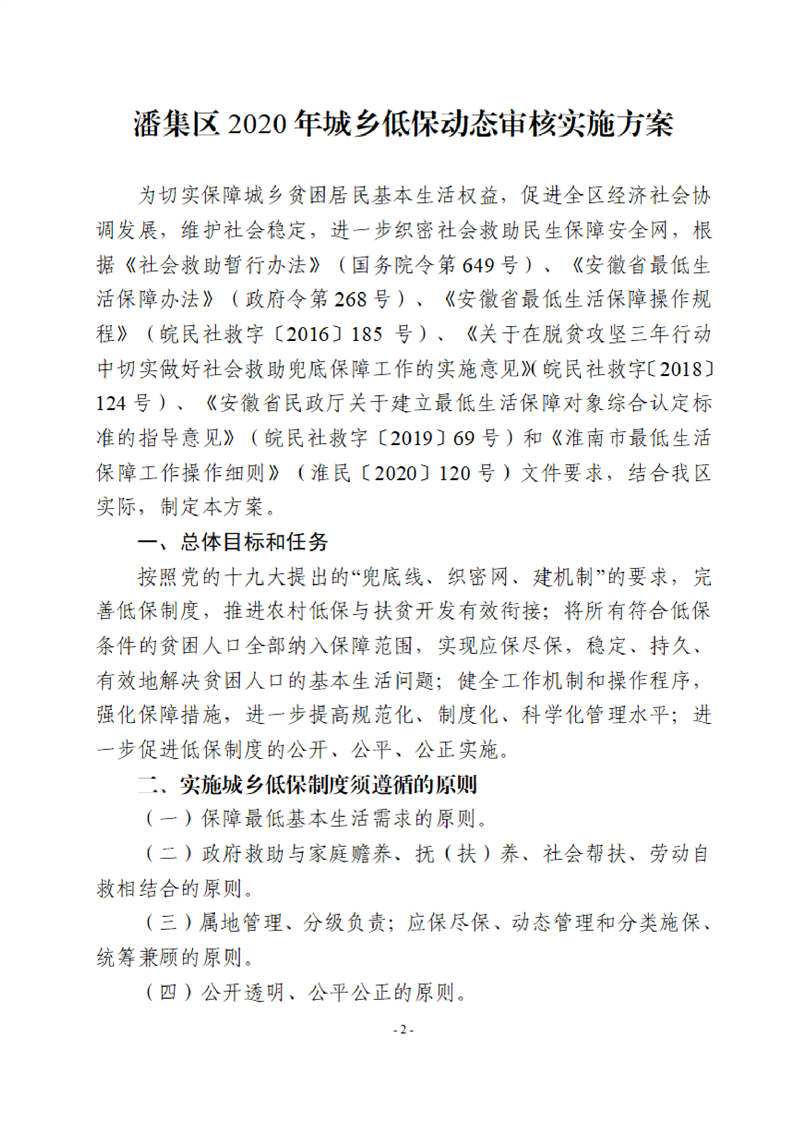 潘集区2020年城乡低保动态审核实施方案