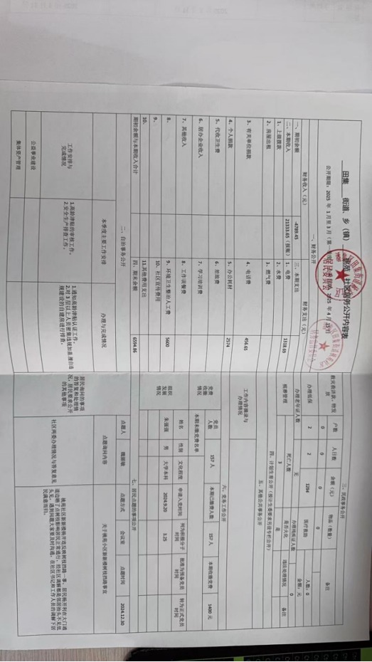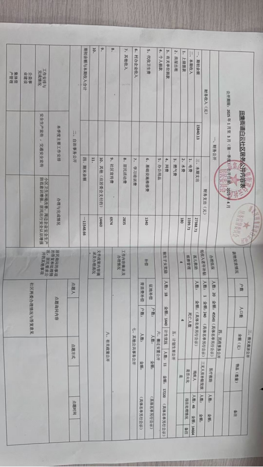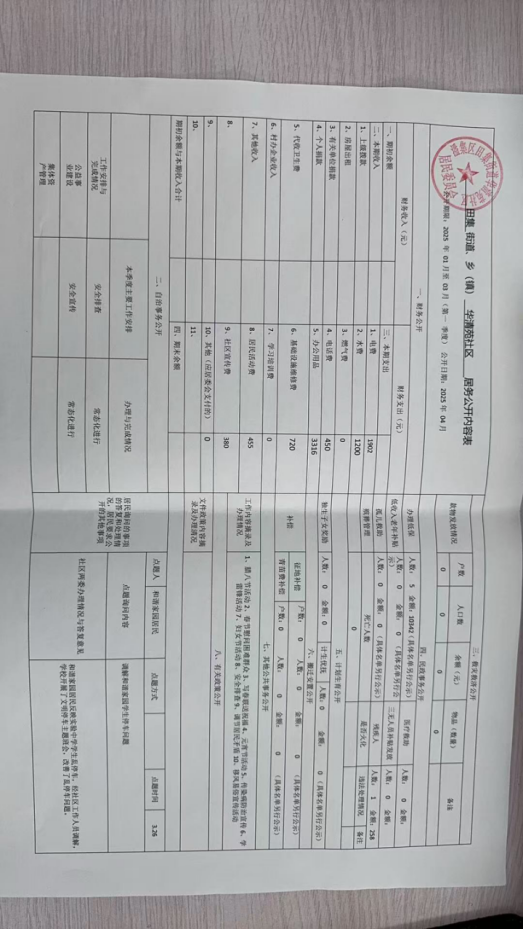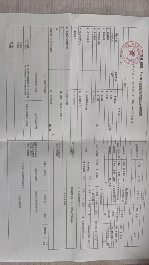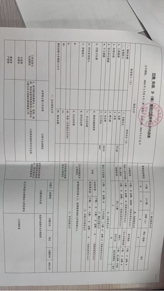 田集街道2025年第一季度居务公开落实情况