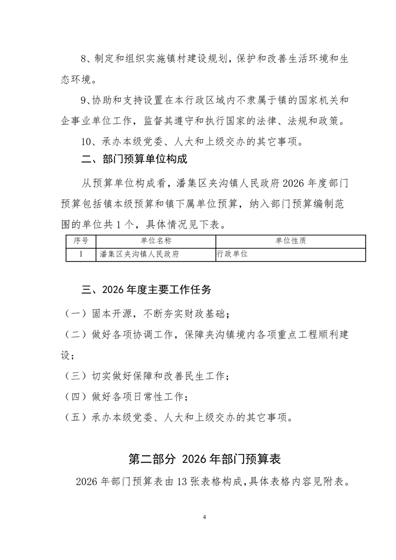 夹沟镇2026年部门预算