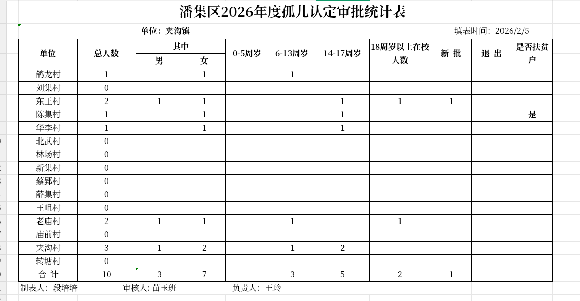 夹沟镇2026年2月孤儿认定审批表