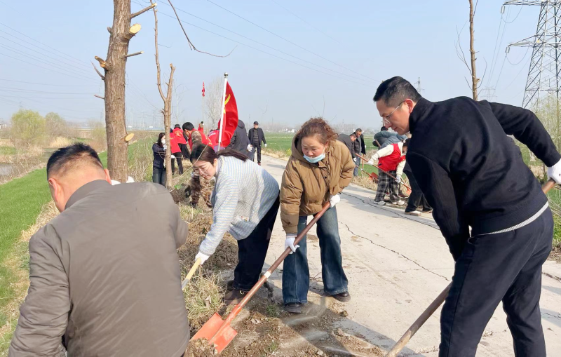 经过一上午的挥汗奋战,400多棵水杉树苗傲然挺立,为初春的田野增添一抹新绿;让“绿色环保”理念在春风里扎根生长。
