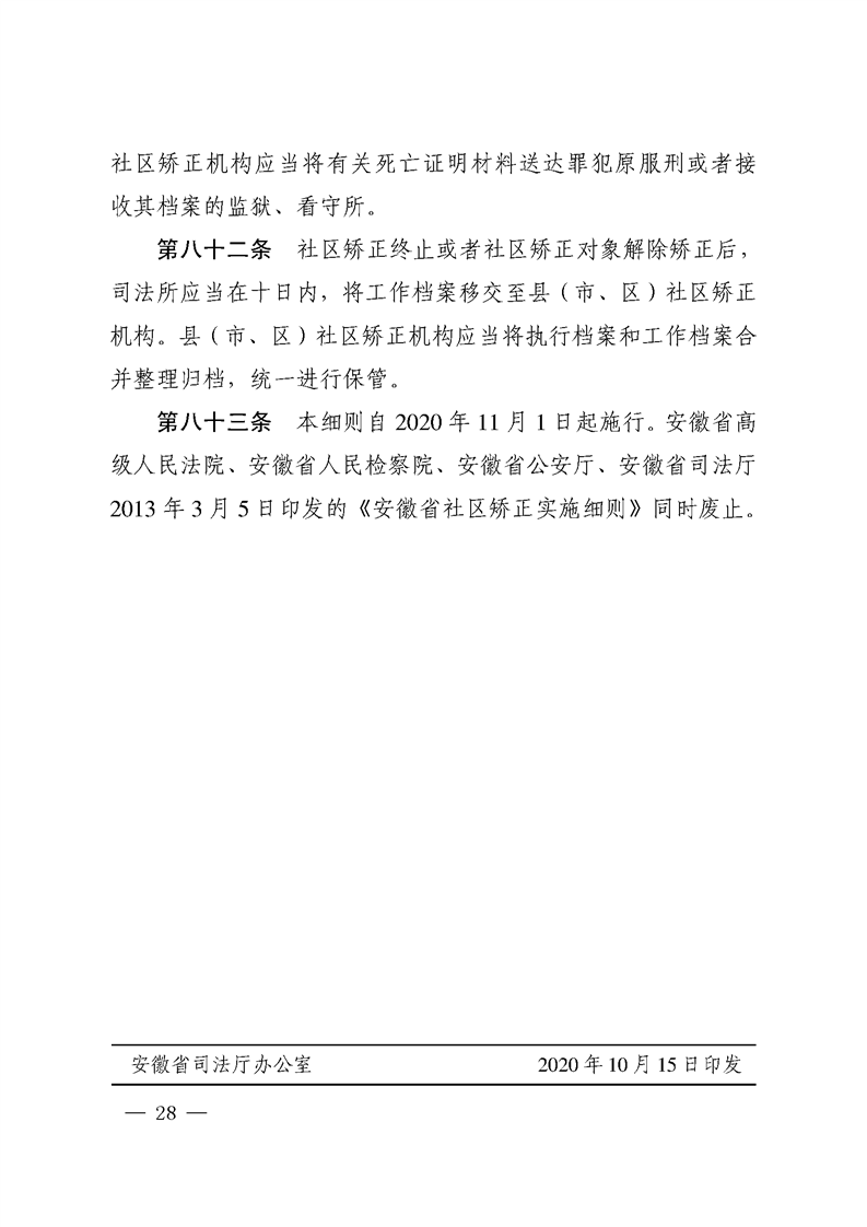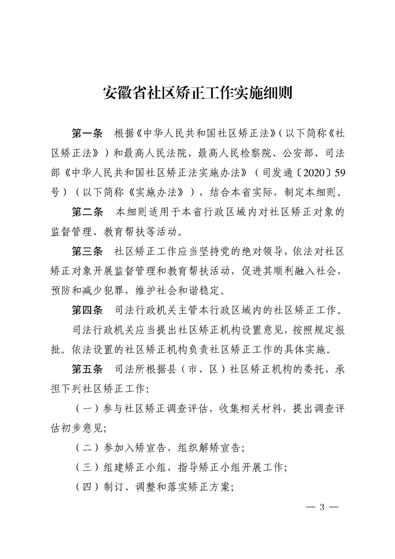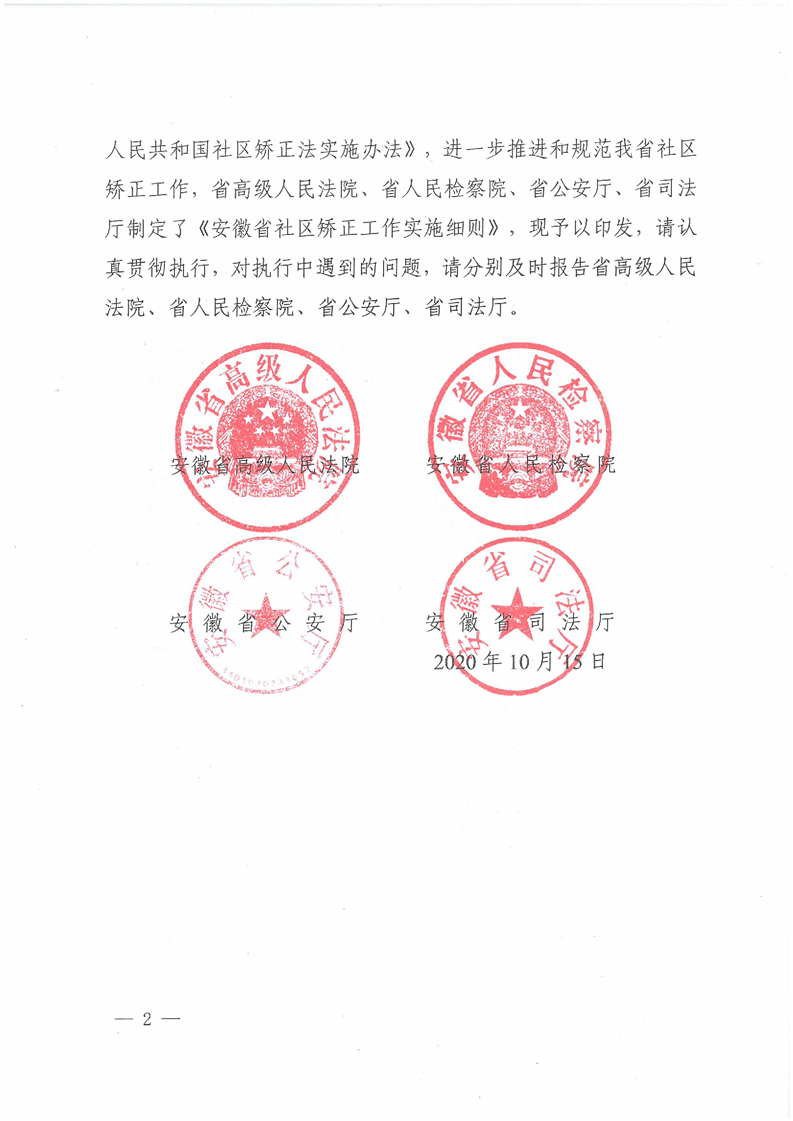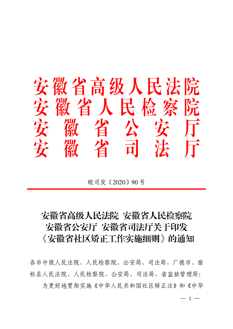 安徽省高级人民法院安徽省人民检察院安徽省公安厅安徽省司法厅关于印发《安徽省社区矫正工作实施细则》的通知